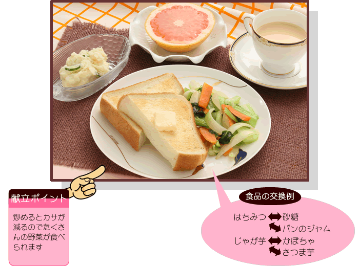 朝食/トースト・ソテー・ミルクティー・ポテトサラダ・クレープフルーツはちみつかけ